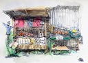 | 旅先で小さな紙に落書きのようなペン画を描いて色をつけ絵日記のように楽しんでいました。葦ペンに出会ってからは大きな紙に描くことにも挑戦しています。ペン画は色を入れたとたんイメージが変わってしまいがっかりすることも多いです。やはり水彩画の基礎を学んでいないせいでしょうか、難しいです。 |