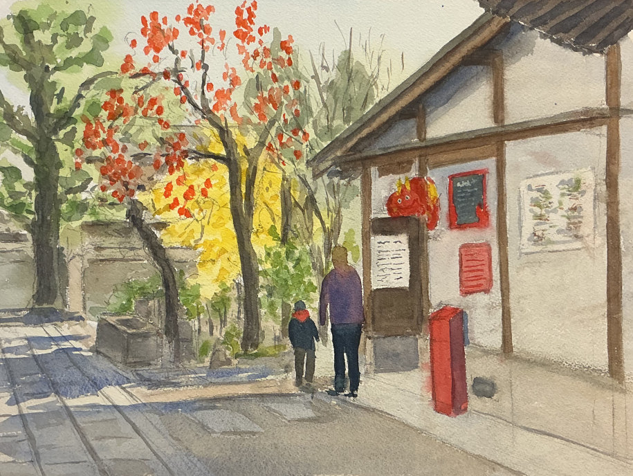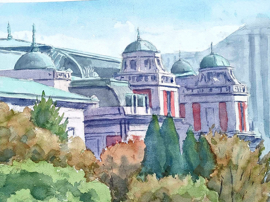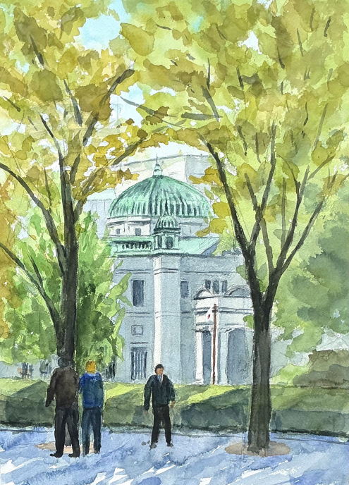 これまでは、テニス・海釣り・園芸など体を動かす趣味ばかりでした。定年後に年を取ってもできる趣味として、子供のころ好きな時間だった絵画を習い始めました。現場でのスケッチはこもれびクラブで初めて経験させてもらいました。