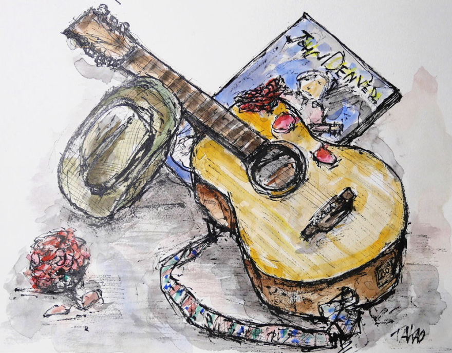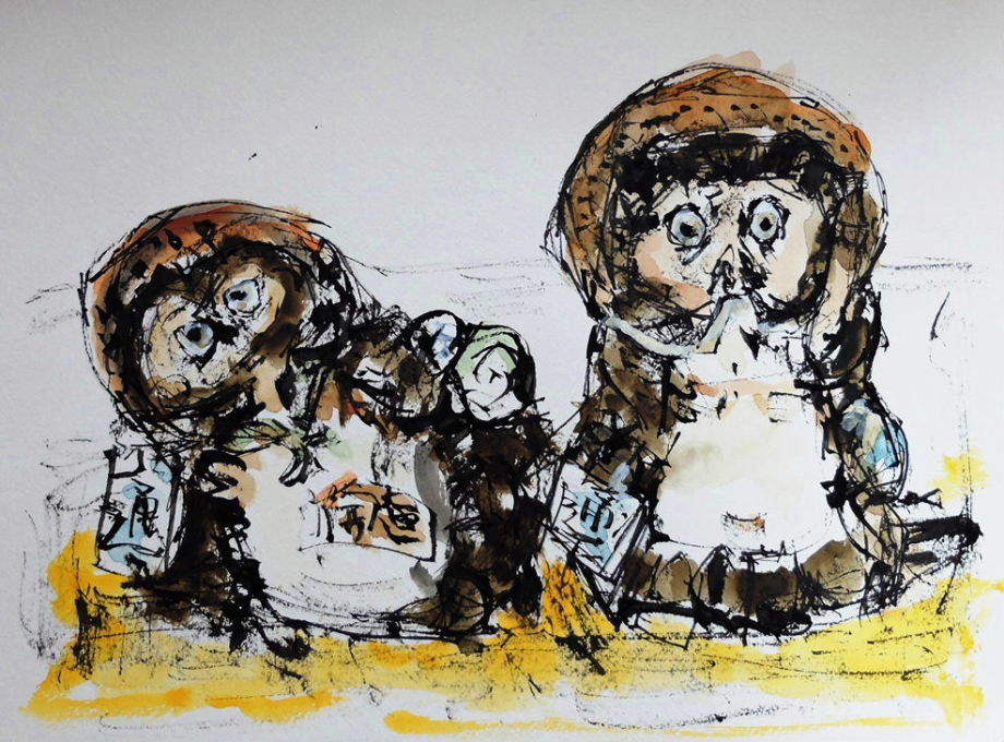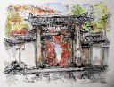 | 旅先で小さな紙に落書きのようなペン画を描いて色をつけ絵日記のように楽しんでいました。葦ペンに出会ってからは大きな紙に描くことにも挑戦しています。ペン画は色を入れたとたんイメージが変わってしまいがっかりすることも多いです。やはり水彩画の基礎を学んでいないせいでしょうか、難しいです。 |