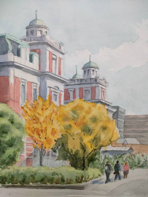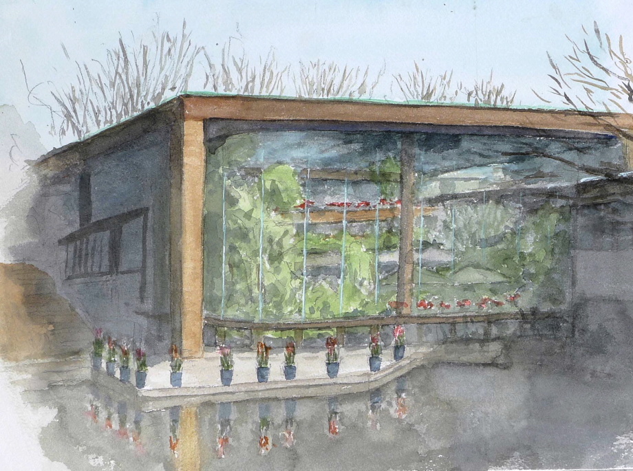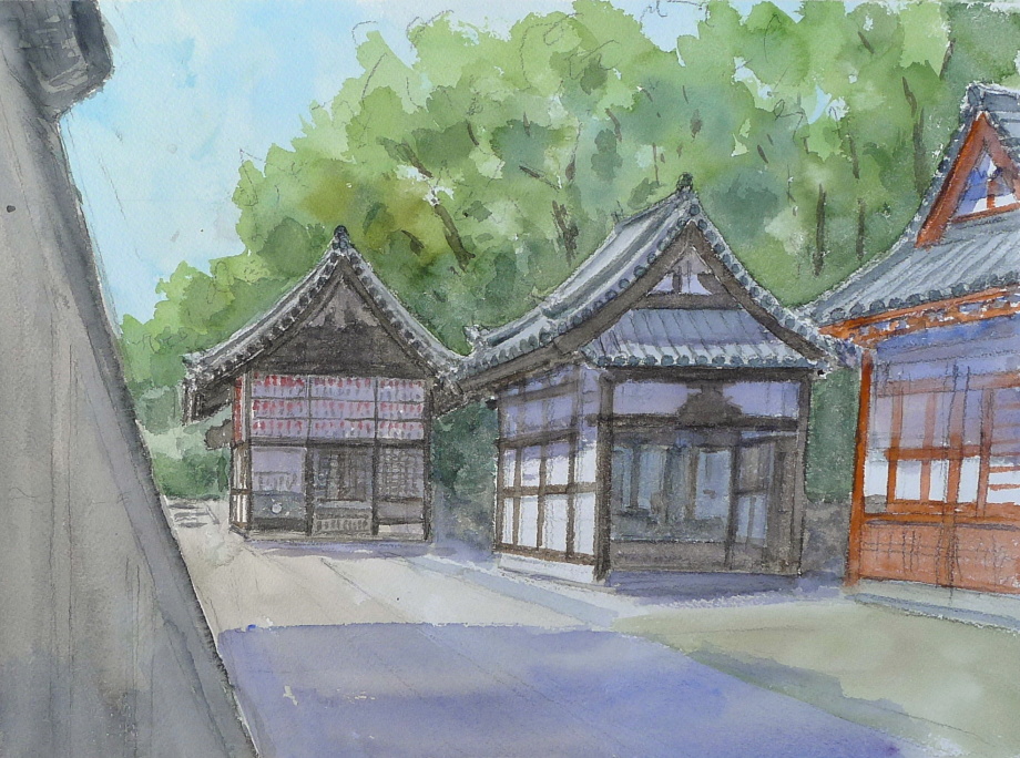 これまでは、テニス・海釣り・園芸など体を動かす趣味ばかりでした。定年後に年を取ってもできる趣味として、子供のころ好きな時間だった絵画を習い始めました。現場でのスケッチはこもれびクラブで初めて経験させてもらいました。 |