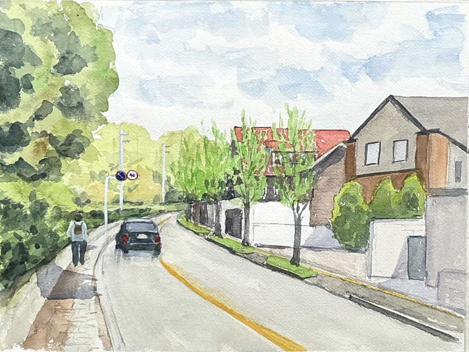 これまでは、テニス・海釣り・園芸など体を動かす趣味ばかりでした。定年後に年を取ってもできる趣味として、子供のころ好きな時間だった絵画を習い始めました。現場でのスケッチはこもれびクラブで初めて経験させてもらいました。